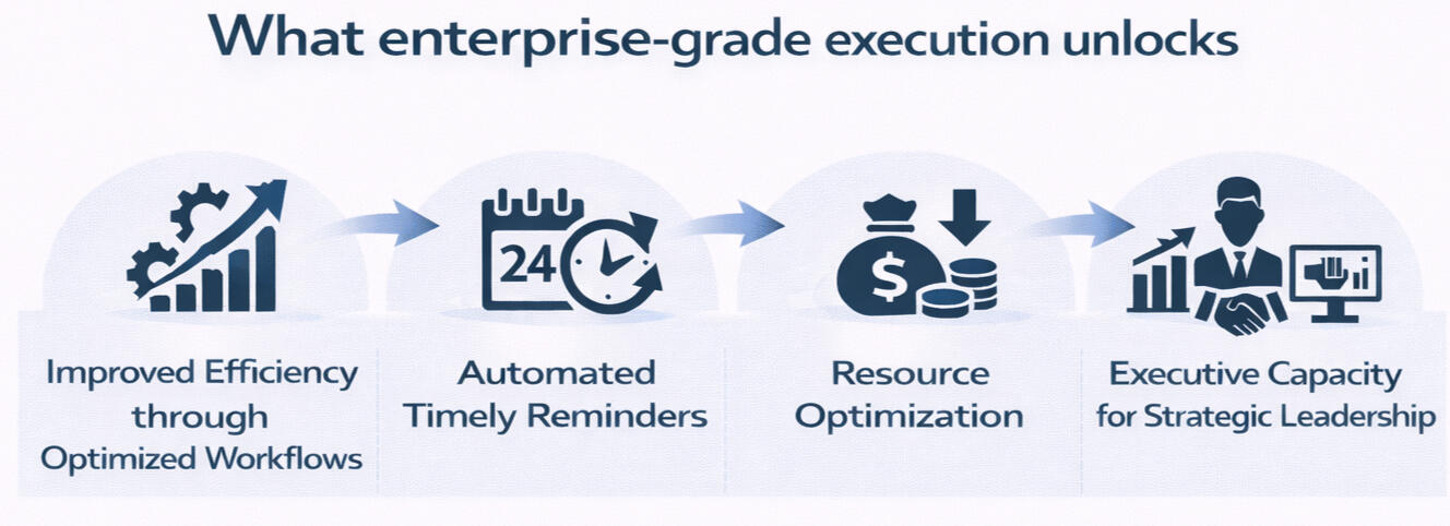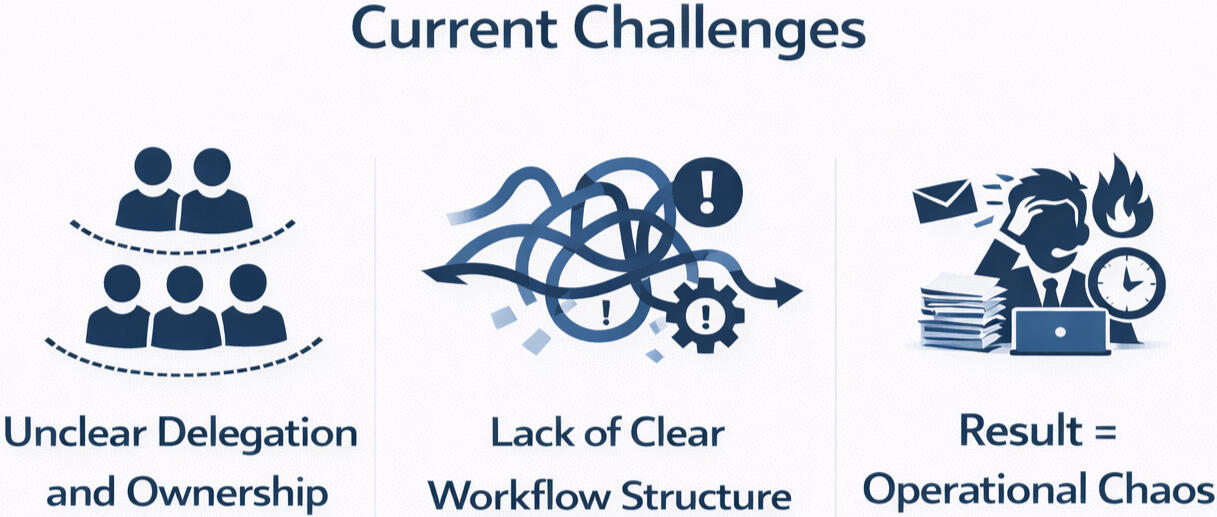 A focused, executive-level discussion to examine how delegation, execution control, and follow-through currently operate across your organization.